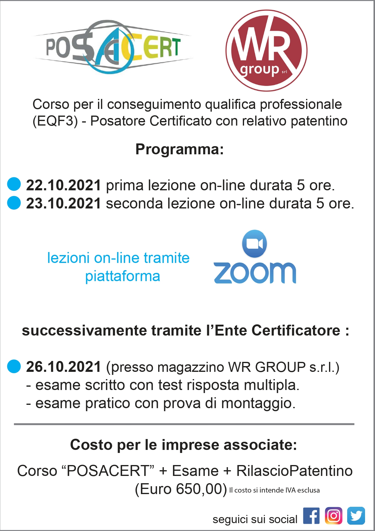 Corso posatore certificato